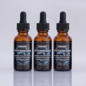 Unlike ordinary immune boosting supplements, MOTHERBOARD, our flagship immune formula is powered by transfer factors—nature’s first antibody. Transfer factors are immune modulators that calibrate to the specific needs of your immune system—calming immune chaos and activating a suppressed immune system. They are precision immune messenger molecules that upgrade your body’s immune operating system. They Detect threats faster, Direct the immune response with exact intensity, and Develop lasting immune memory—arming your system to defend smarter, stronger, and faster. They are what colostrum pretends to be. Combined with powerful antioxidants like quercetin and a restorative mushroom complex, MOTHERBOARD is the world’s premier immune solution.